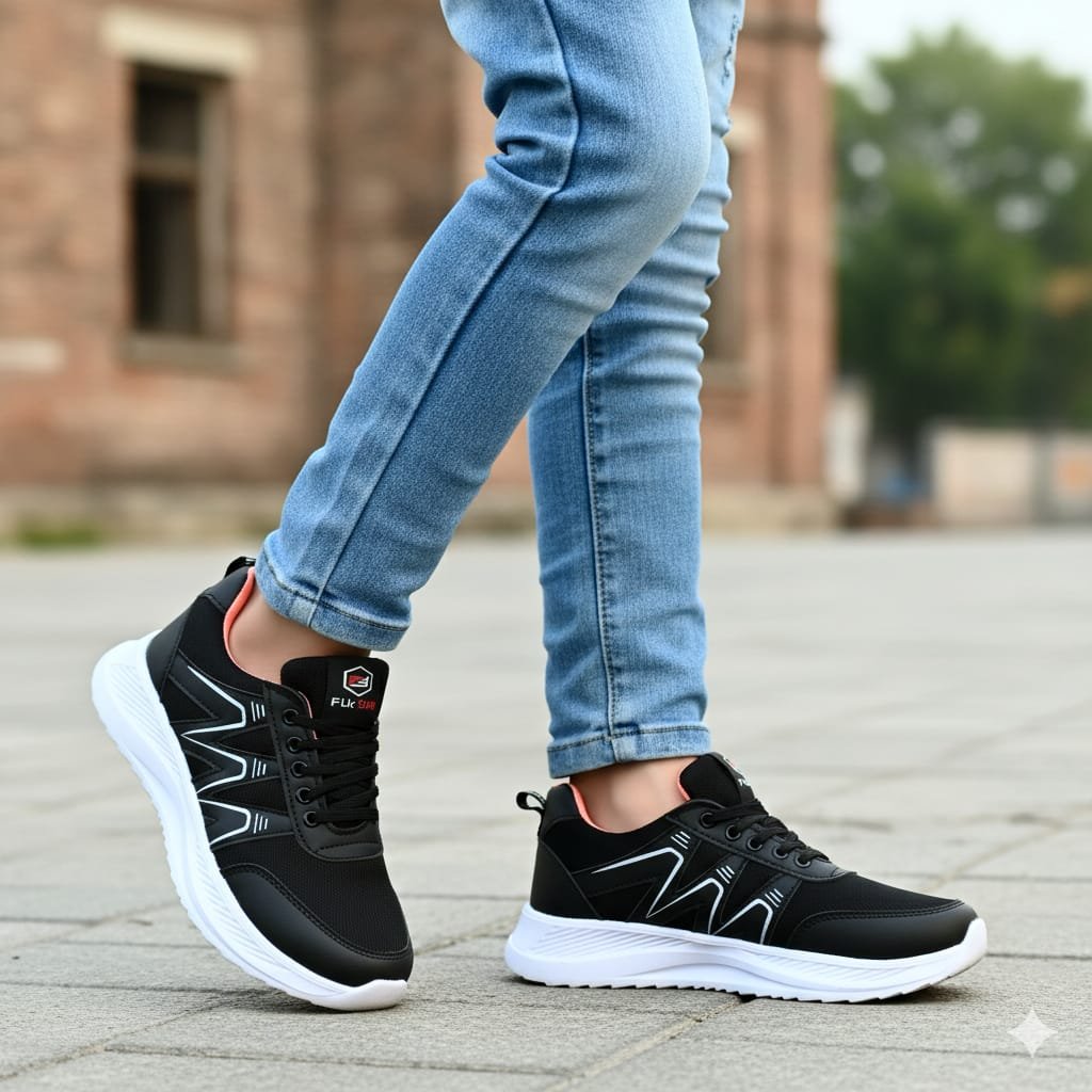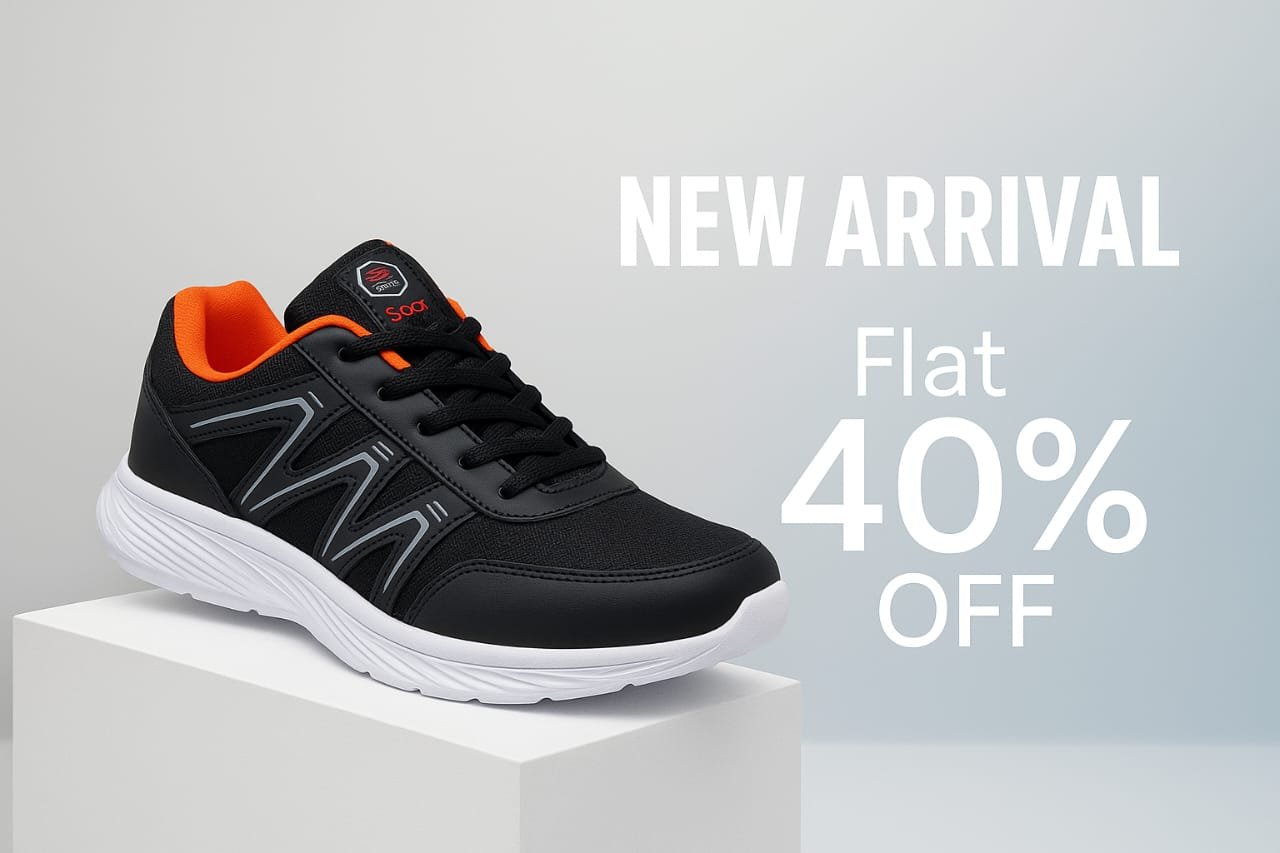 Stylish men’s black running shoes with breathable fabric, lightweight build, and non-slip sole — ideal for gym, jogging, and casual wear.